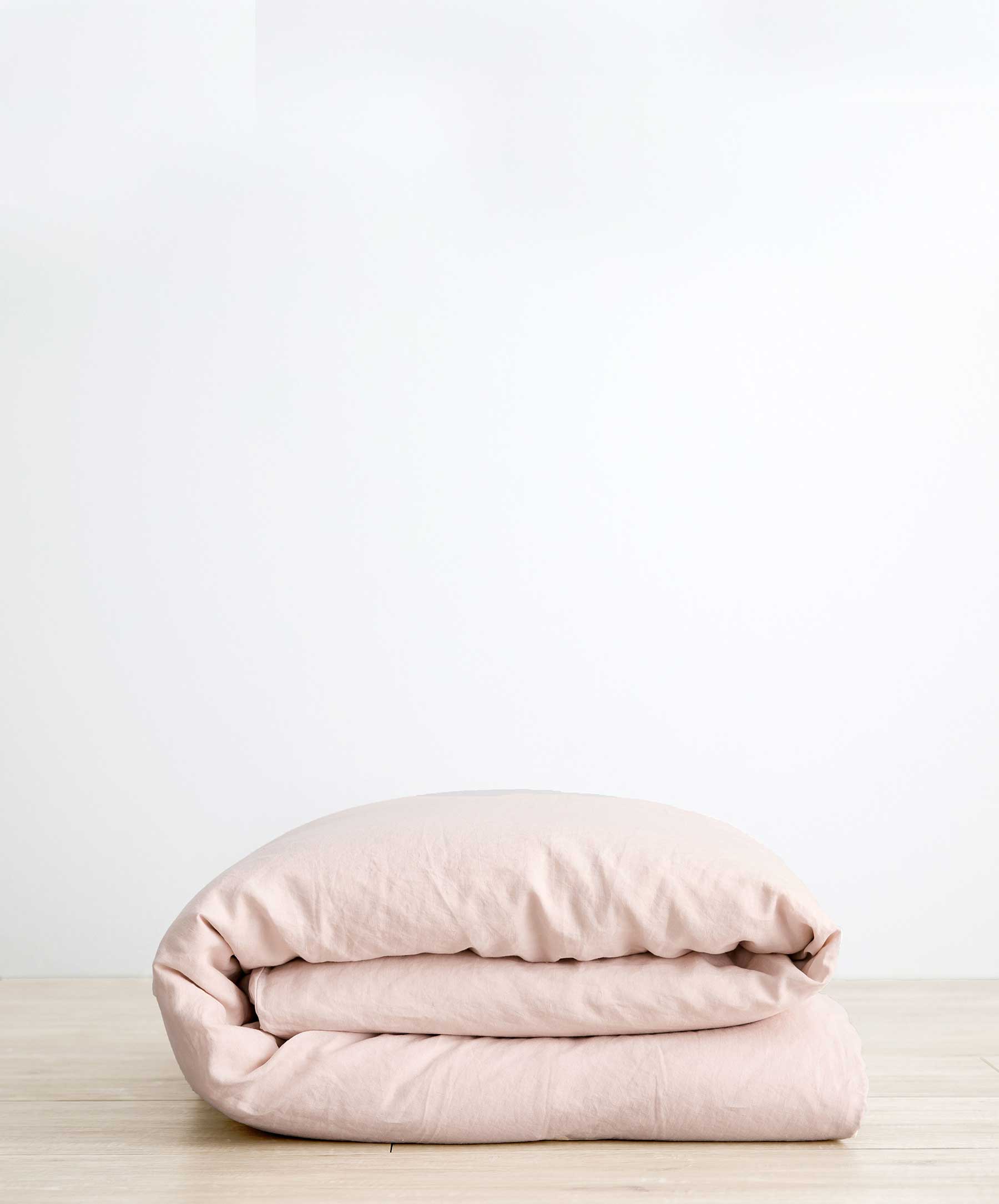 Une combinaison ton sur ton comprenant nos taies d'oreiller réversibles en lin et soie couleur blush, nos taies d'oreiller cèdre et notre housse de couette fauve.
