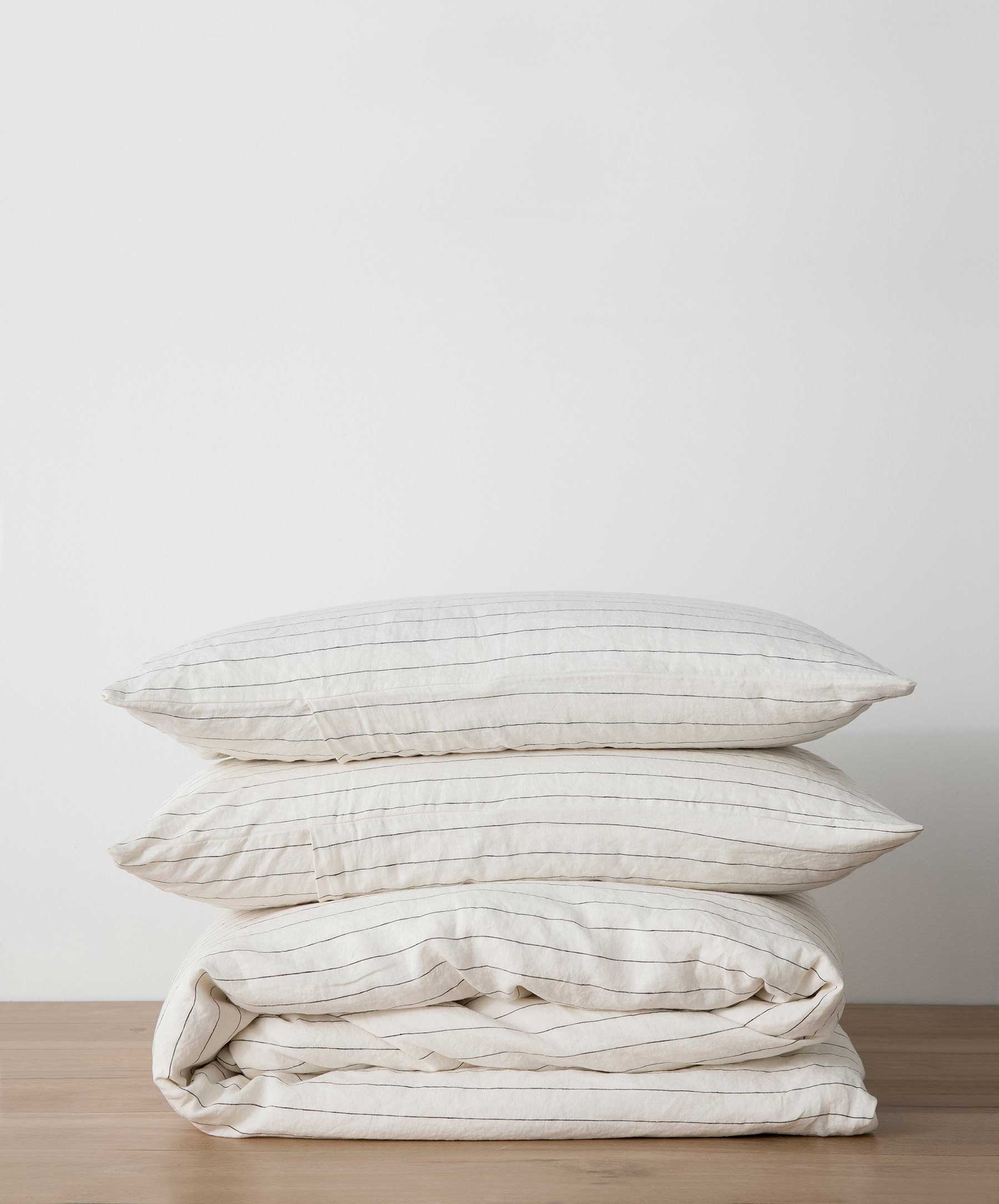 Parure de lit en lin à rayures fines
