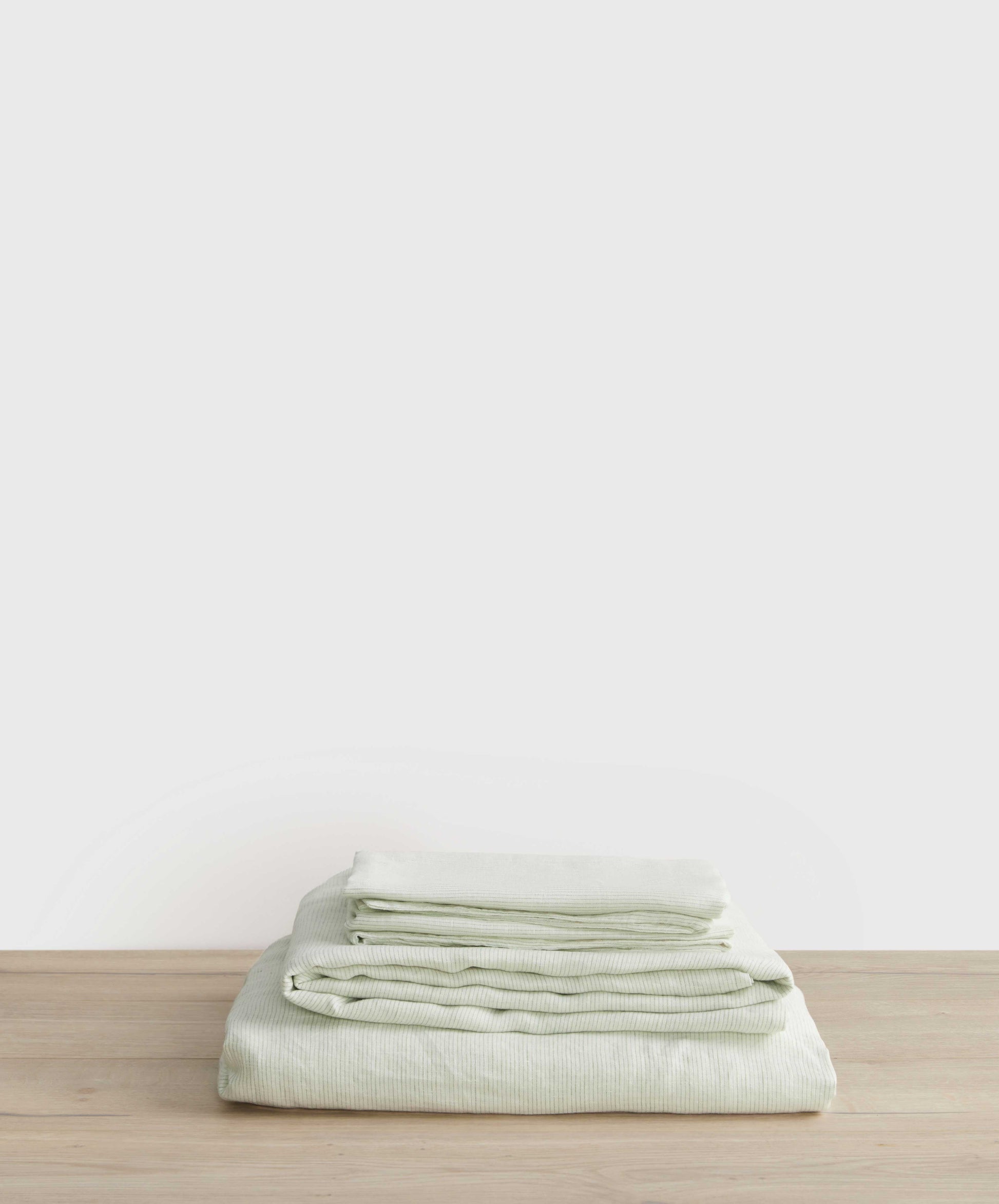Parure de draps en lin avec taies d'oreiller - Rayures fougère