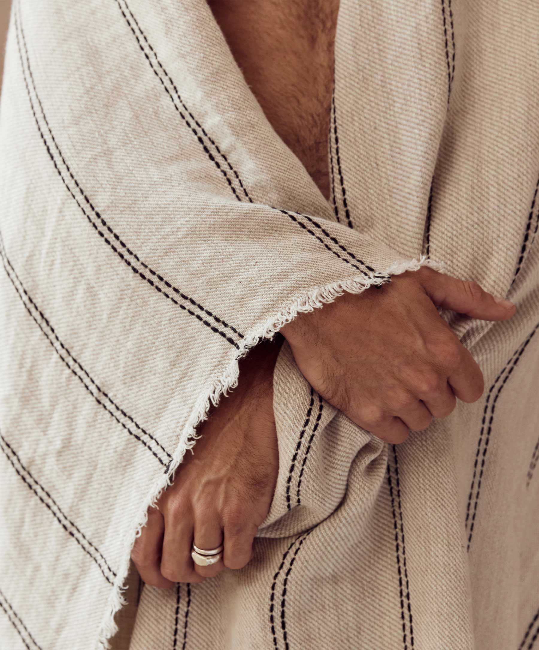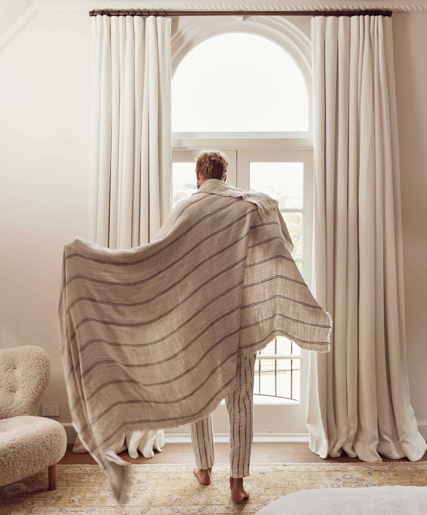 Tissée au Portugal avec du lin épais de la plus haute qualité, cette couverture est à la fois confortable et magnifique.