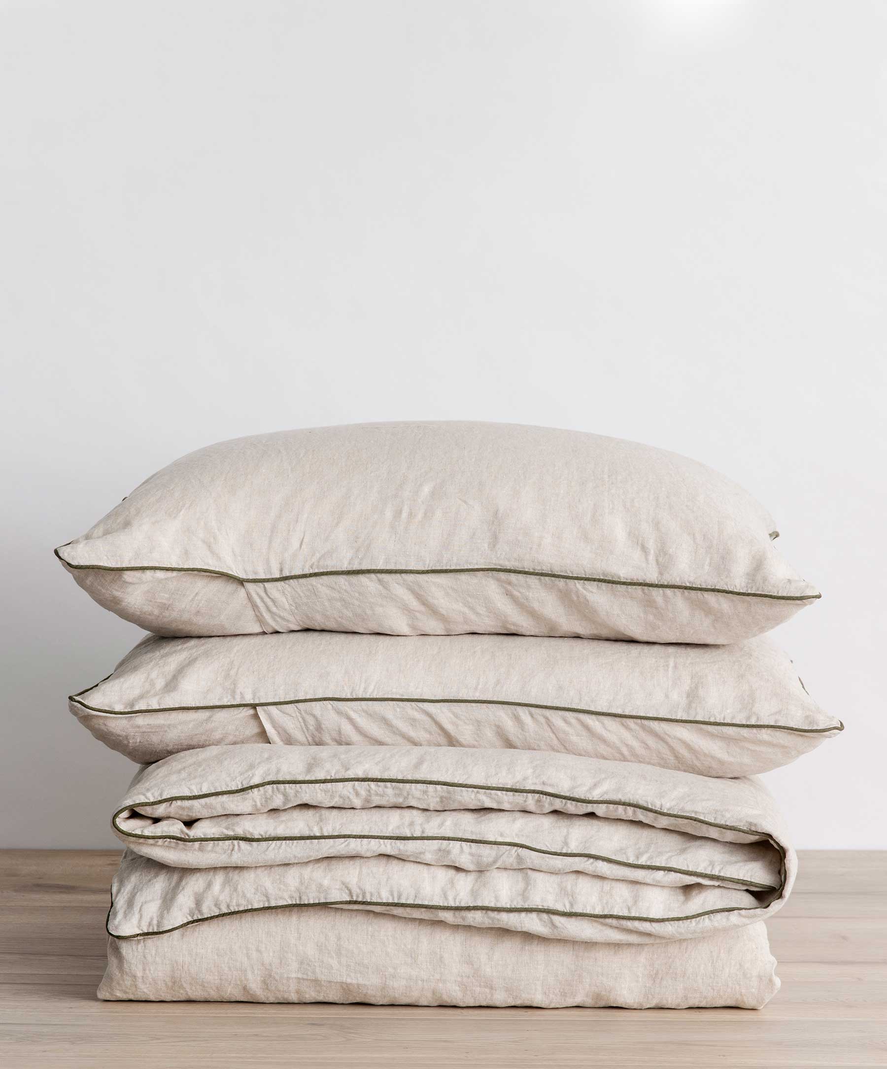 Parure de lit en lin passepoilé - Naturel et Forêt