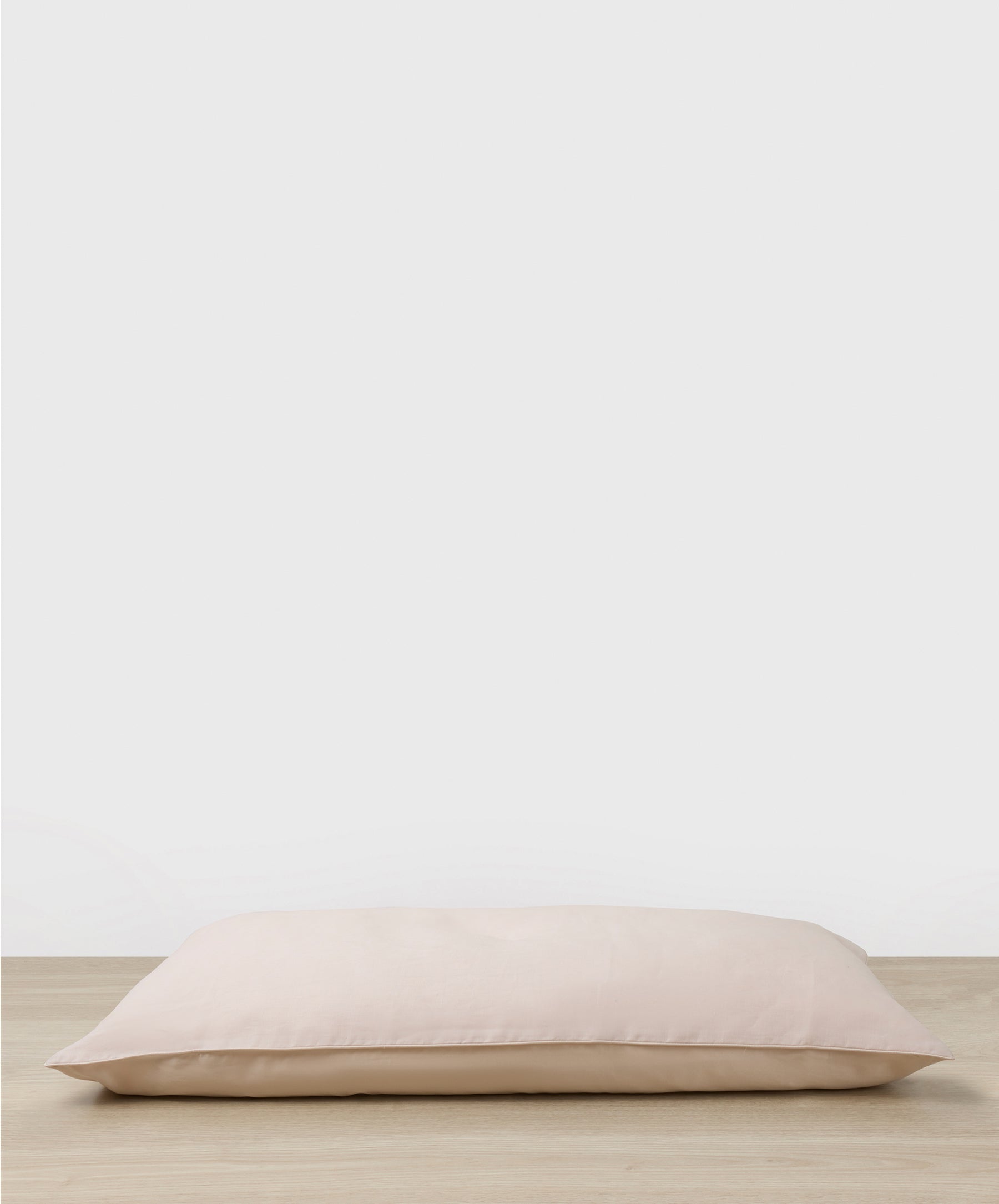 Taie d'oreiller réversible en lin et soie - Rose poudré
