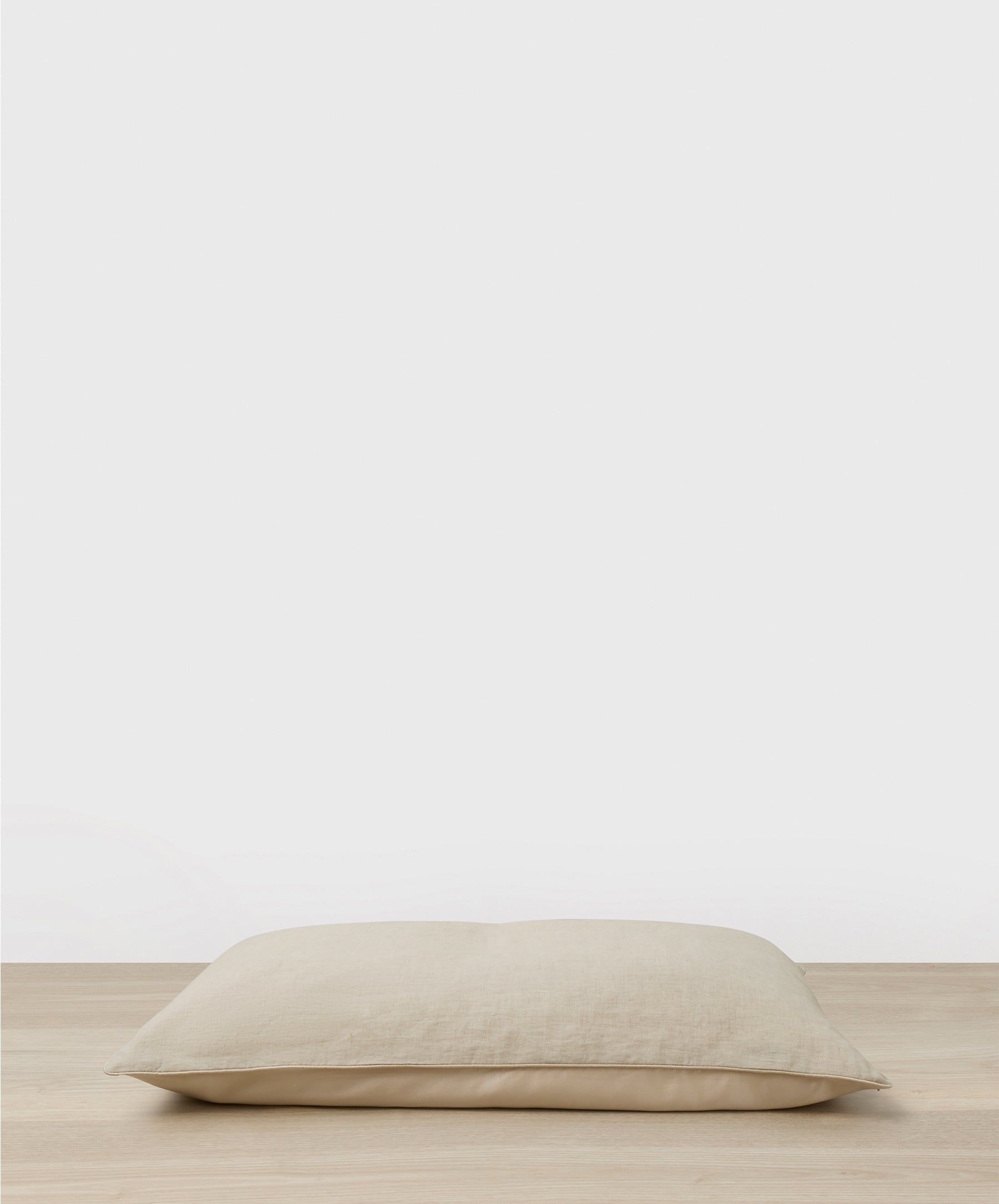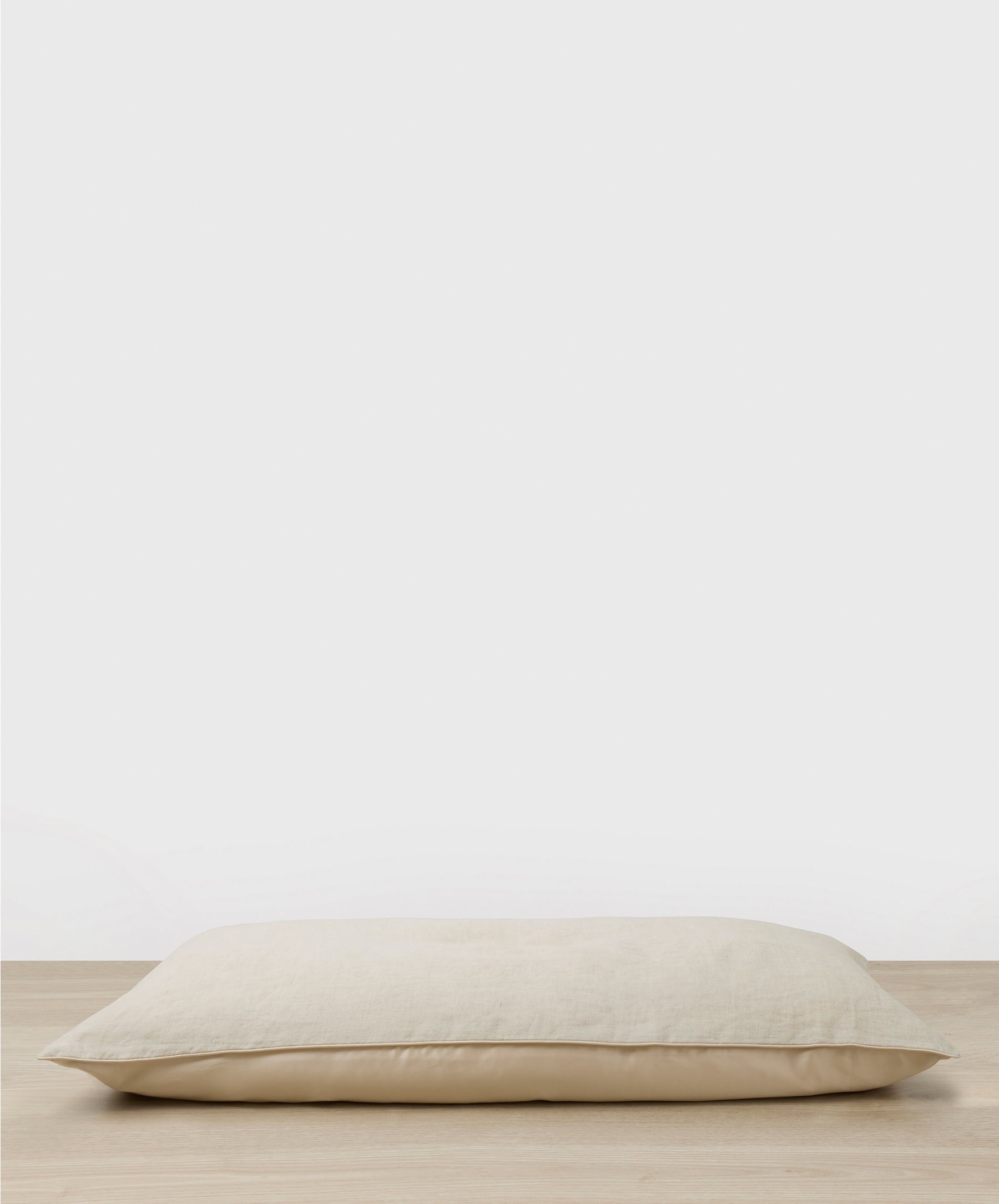 Avec sa face en soie de mûrier 100 % naturelle et sa face en lin pur, notre taie d'oreiller réversible soie et lin vous offre une élégante alternative pour sublimer votre lit. Son nouveau design est rehaussé d'un passepoil pour une finition plus soignée.