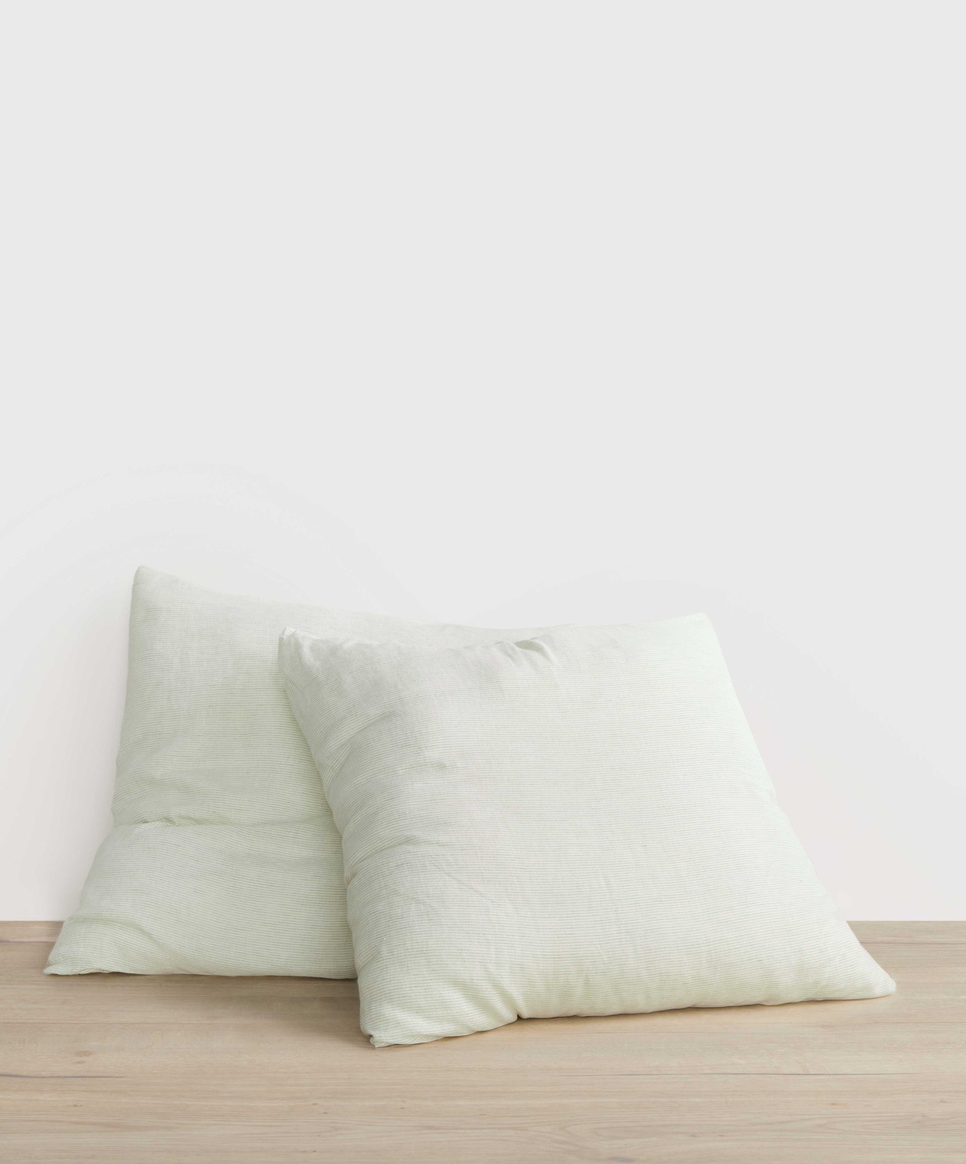 Lot de 2 taies d'oreiller carrées en lin - Rayures fougère