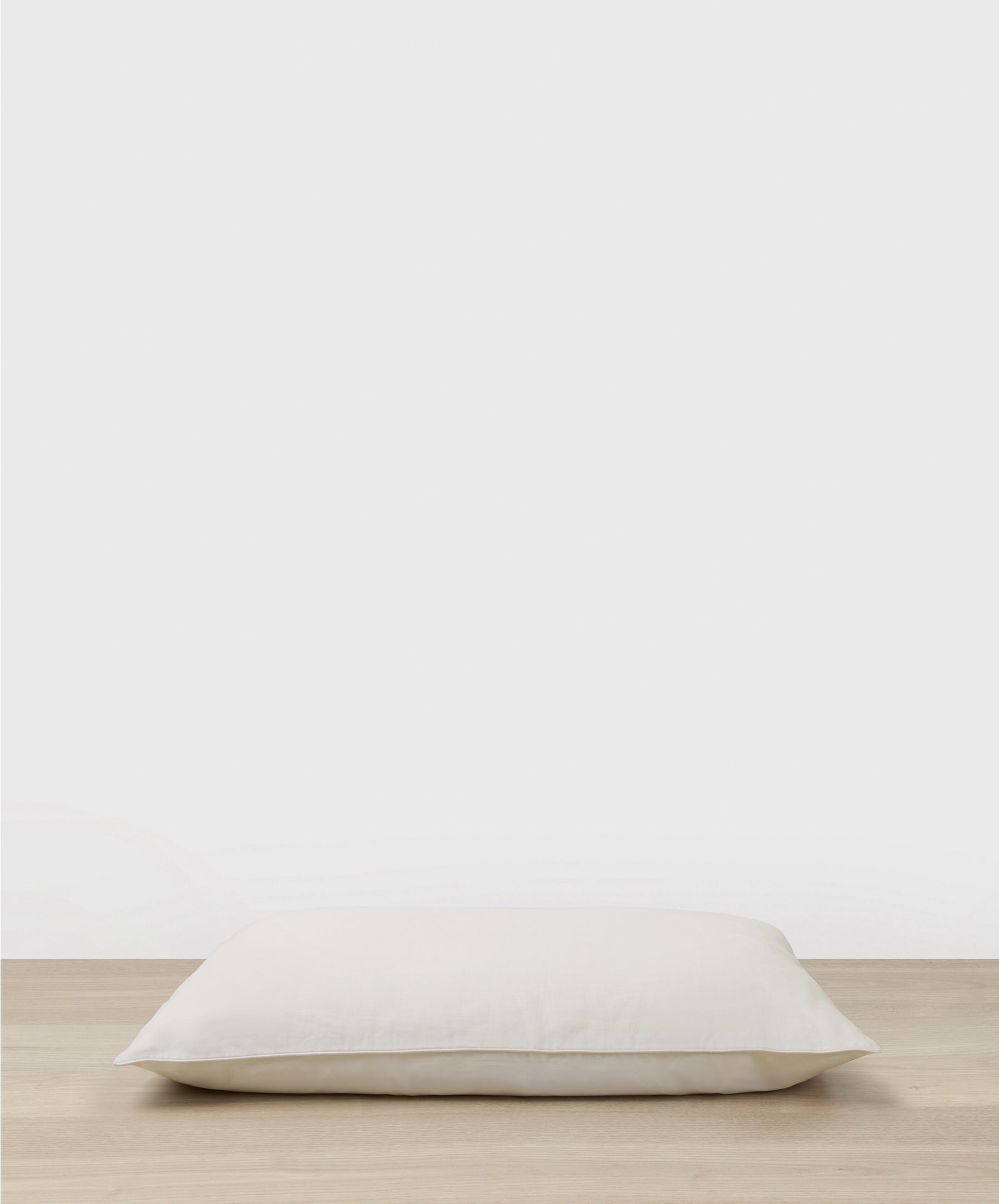 Taie d'oreiller réversible en lin et soie - Ivoire