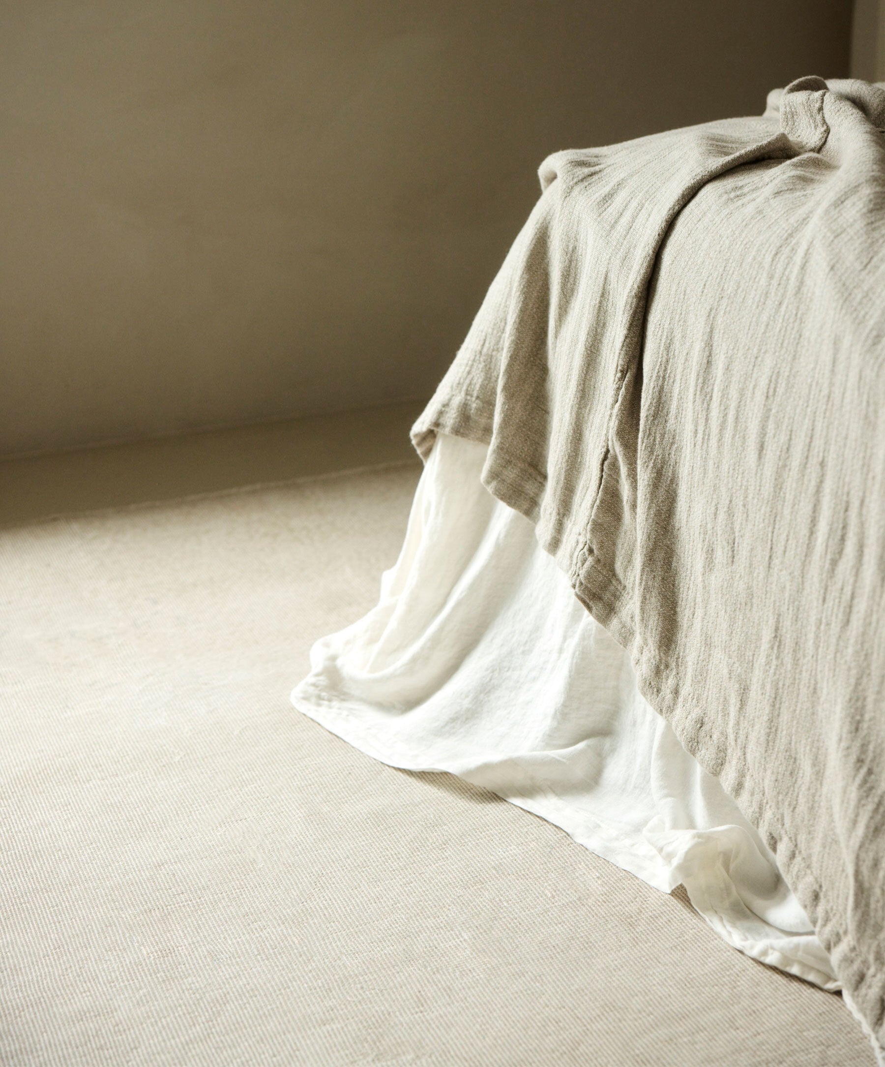 Thatch est un tissu au tissage complexe, un nouveau style pour Edition II. Ce modèle se déploie sur le sol, enveloppe délicatement les coussins et recouvre entièrement un lit – des proportions savamment étudiées par le styliste de référence mondial.
